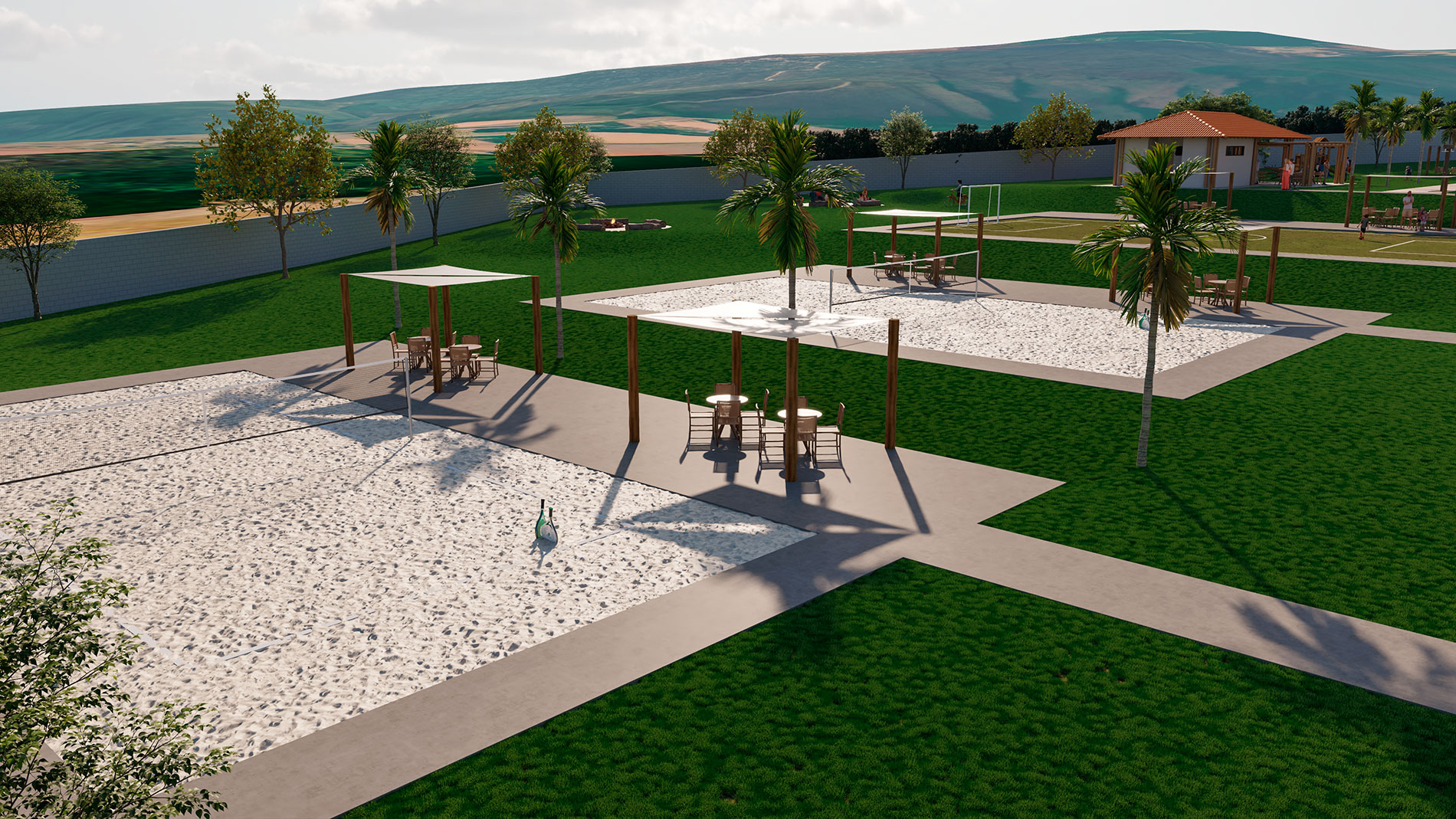 Sim, teremos uma área comum com piscinas, quadras esportivas e muito mais.
